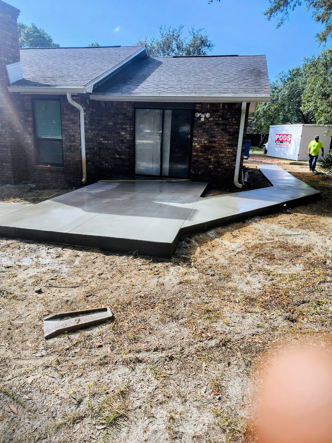 During the project we used high-quality materials and proven techniques to achieve a durable surface that will stand up to northwest Florida conditions. The crew handled site preparation, form installation, pouring, and finishing with attention to a consistent grade and smooth, safe walking surface. We also took care of clean up and a final walkthrough with the homeowner.
